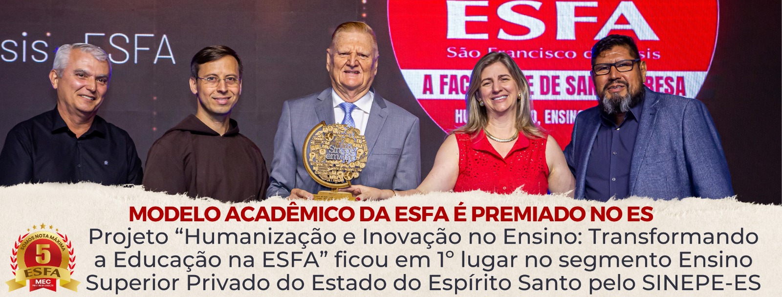 A Escola Superior São Francisco de Assis (ESFA) conquistou o 1º lugar na categoria Ensino Superior na 16ª edição do Sinepe em Ação, realizada no dia 22 (sexta-feira), com o projeto "Humanização e Inovação no Ensino: Transformando a Educação na ESFA".