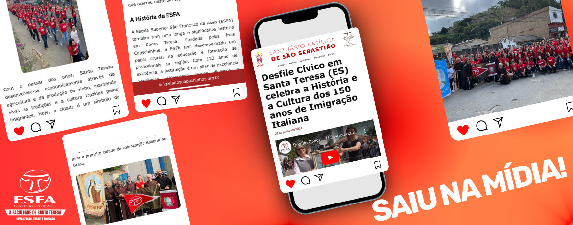 A ESFA – Faculdade de Santa Teresa – apoiará o 20º Caminho do Imigrante para comemorar os 150 anos da imigração italiana no Brasil. Sob o tema “Santa Teresa: Aqui Começou a Imigração Italiana no Brasil”, o evento está marcado para o dia 1º de maio de 2024, e promete ser uma jornada emocionante e culturalmente enriquecedora.
