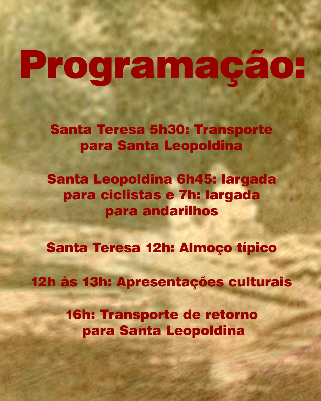 Santa Leopoldina 6h45: largada para ciclistas 7h: largada para andarilhos