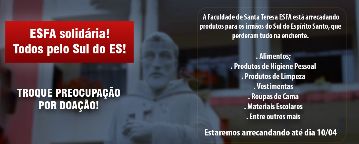A ESFA, Faculdade de Santa Teresa, por meio do Programa ESFA Portas Abertas, começará a receber a partir de março, as inscrições e o agendamento das escolas da rede municipal, estadual e rede privada de ensino que queiram realizar visitações, ministração conjunta de aulas práticas nos laboratórios e aproveitar o espaço arborizado e agradável nas dependências da Faculdade.